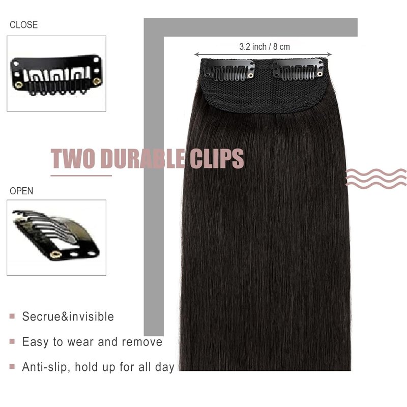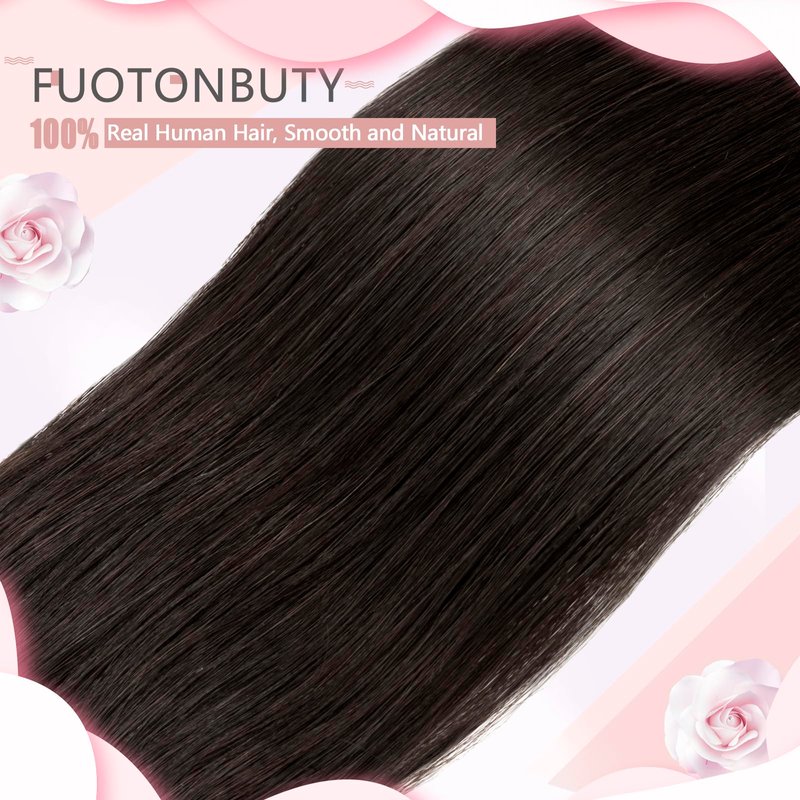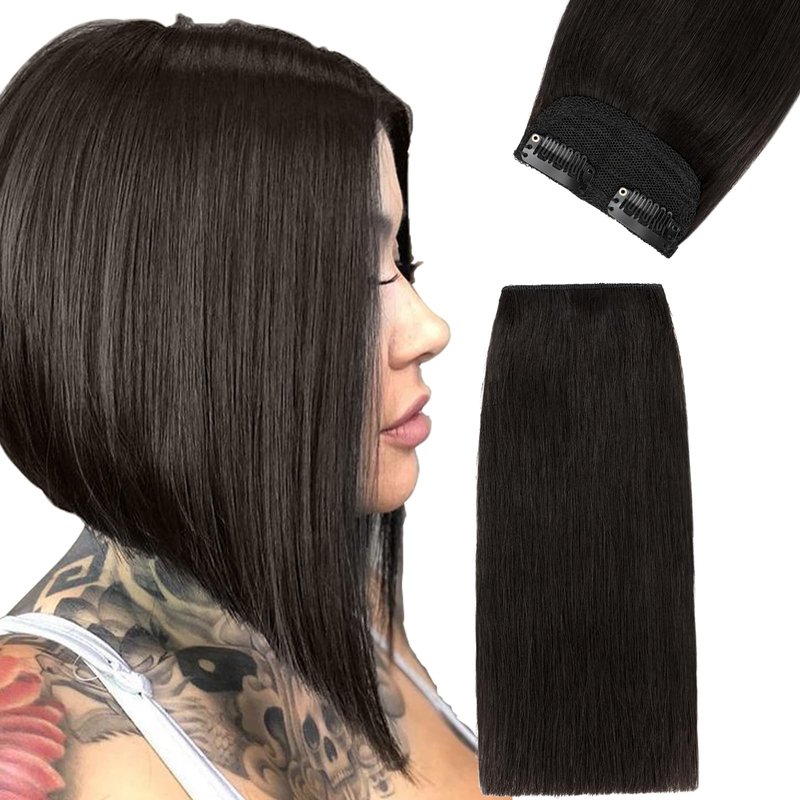 FUOTONBUTY 1 Pcs Short Hair Extensions Clip in 8 Inch Natural Black Hairpiece Human Hair Toppers for Women With Thinning Hair Adding Hair Volume
