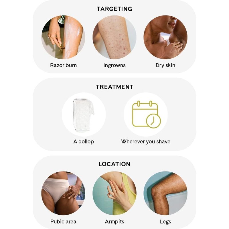 - Our product can be used anywhere you want, as often as you want. Apply a dollop of our product onto wet skin, shave, and rinse.