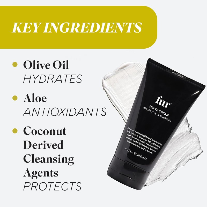 - Fur Shave Cream's whipped, featherlight texture and soft finish is made to glide over your skin without causing razor burn. The moisturizing cream also helps reduce ingrowns, bumps, and irritation.