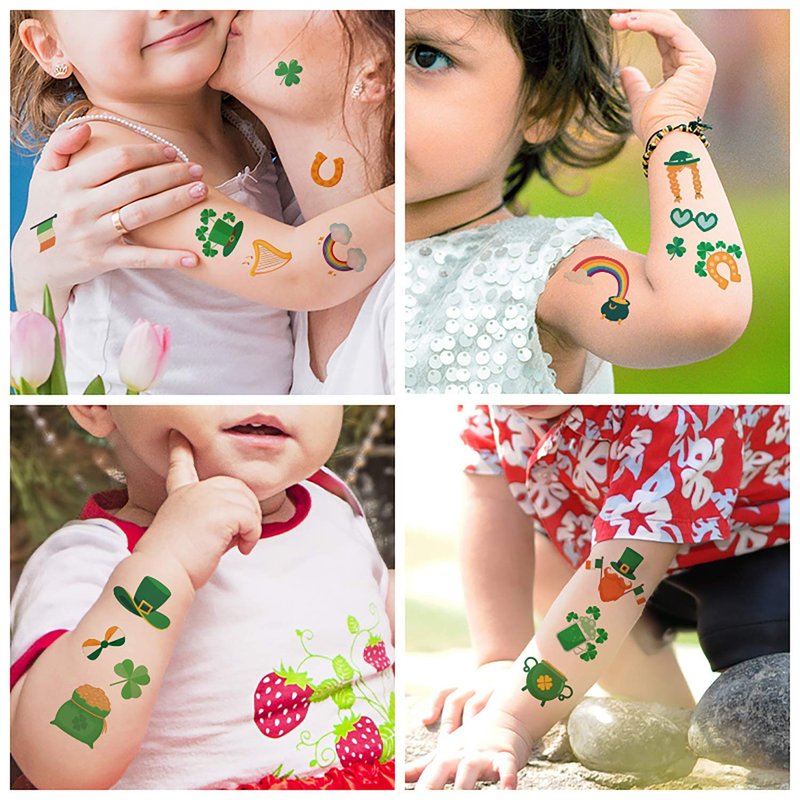 - SUITABLE FOR KIDS AND ADULTS: Tons of different Irish temporary tattoos for kids having fun, and also not cheesy for adults. Pass shamrock temporary tattoo out to all of your friends, classmates, families, coworkers,etc. Everyone will have st. Patrick’s Day fun with them.