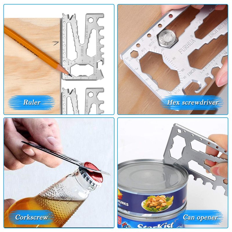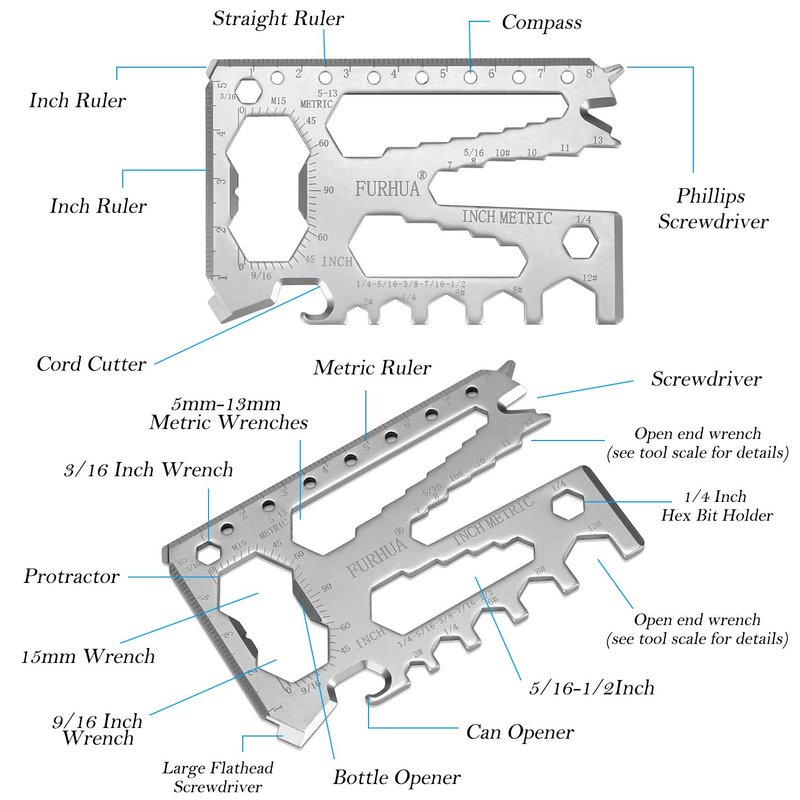 - Credit Card Survival Tool - 42 in One Multipurpose Beer Bottle Opener Portable Wallet Size Pocket Multitool - works as wrenches, screwdrivers, Inch & Metric Ruler, bottle opener, can opener, pry bar, cord cutter, hex bit driver, Phillips Screwdriver and more. Wonderful gift for DIY Handyman, Father/Dad, Husband Boyfriend, Valentine Gifts for Him