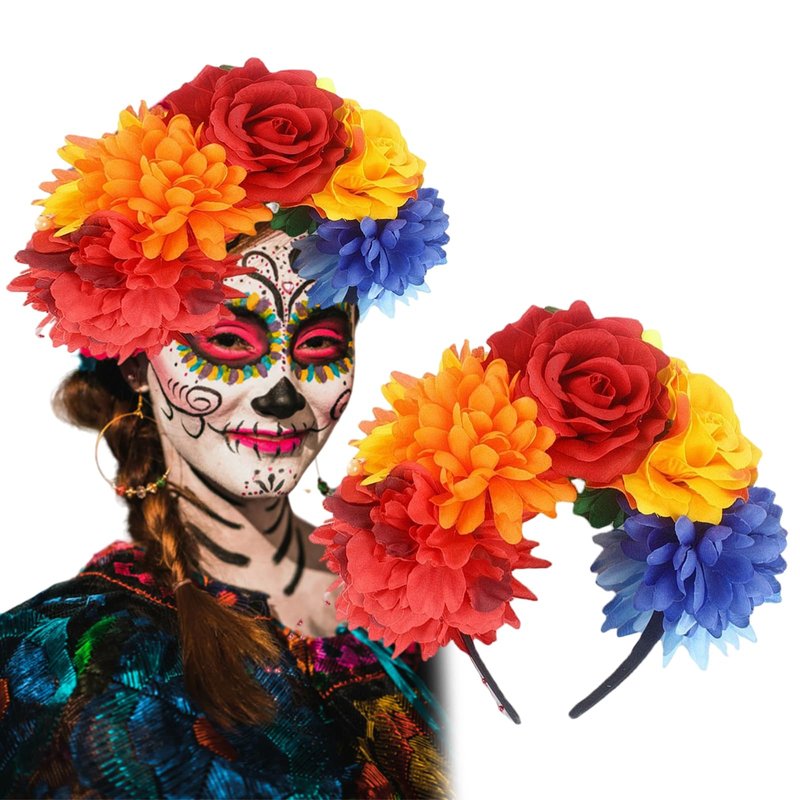 Mexican Rose Flower Crown Headband Halloween Party Costume Headpiece