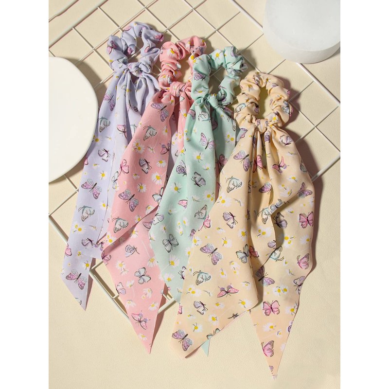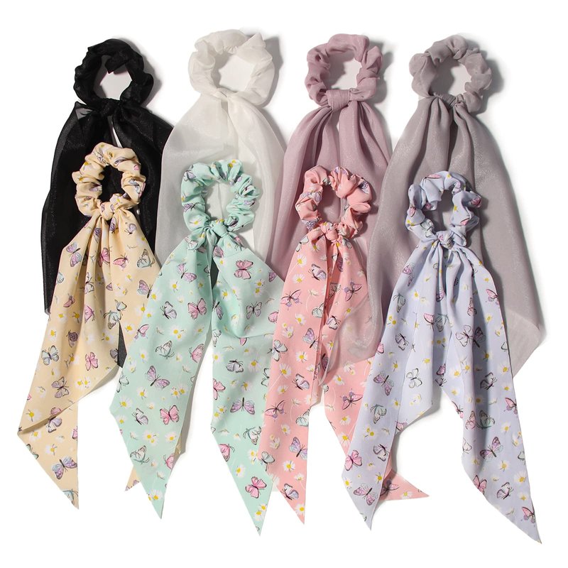 - Parcel Includes: The package contains 8pcs hair scarfs with ribbon, there are 4pcs solid color hair scrunchies and 4pcs butterfly hair bands. you can choose any scrunchie you like to match your clothes, hairstyle or bags, it is elegant and soft