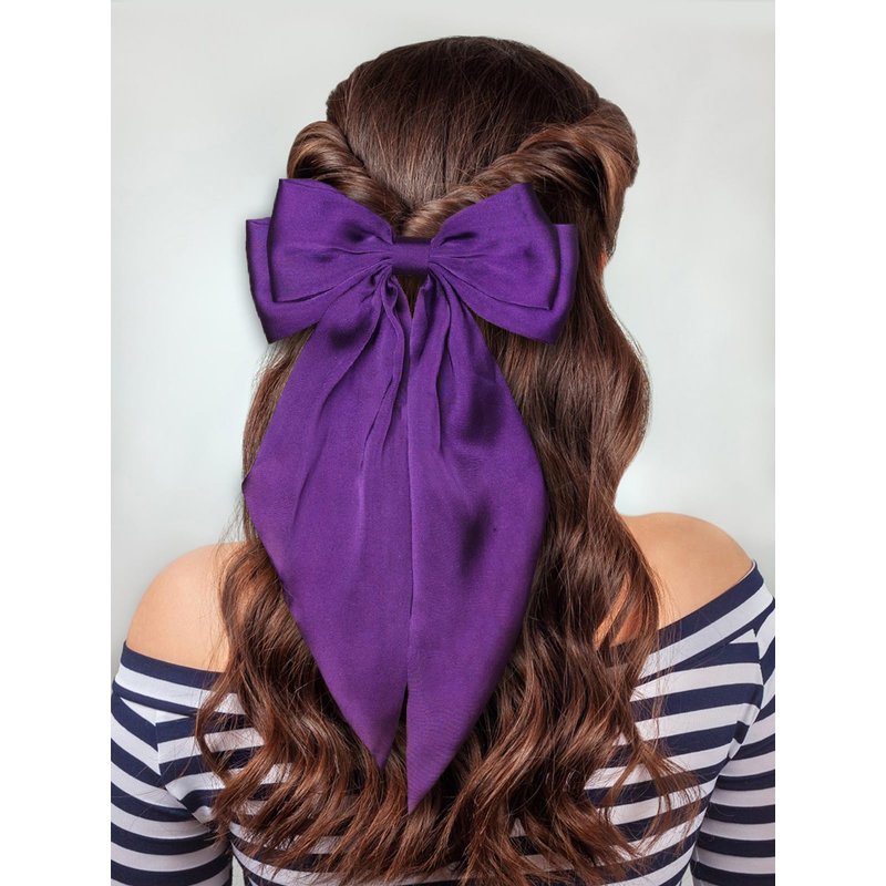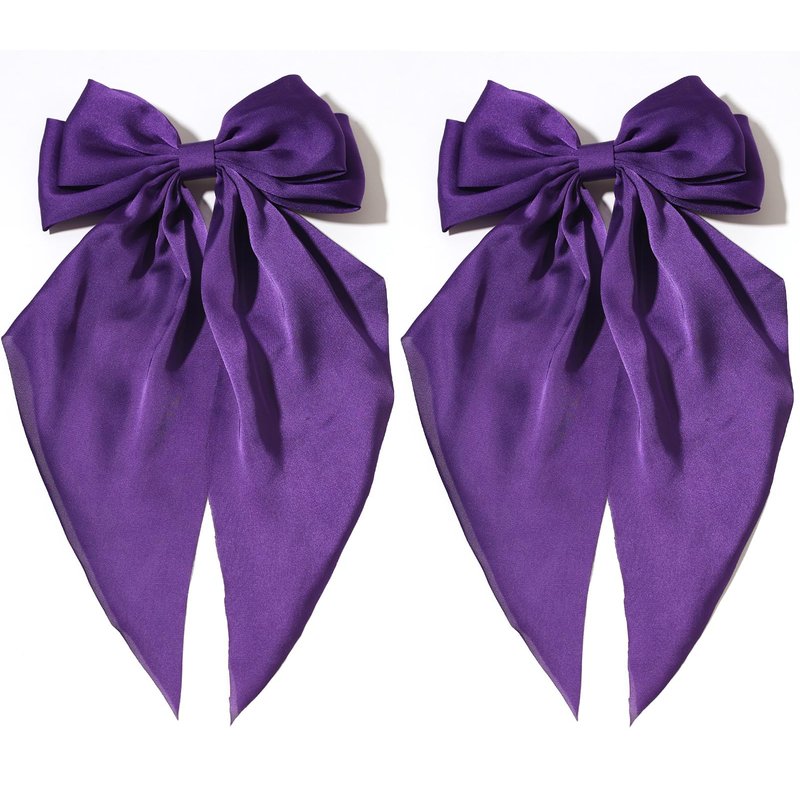 - PREMIUM QUALITY FABRIC: The hair bows are made of satin fabric and metal hair clips. Two pieces purple hair bow clip set, with an elegant big bow design can make you more charming and attractive