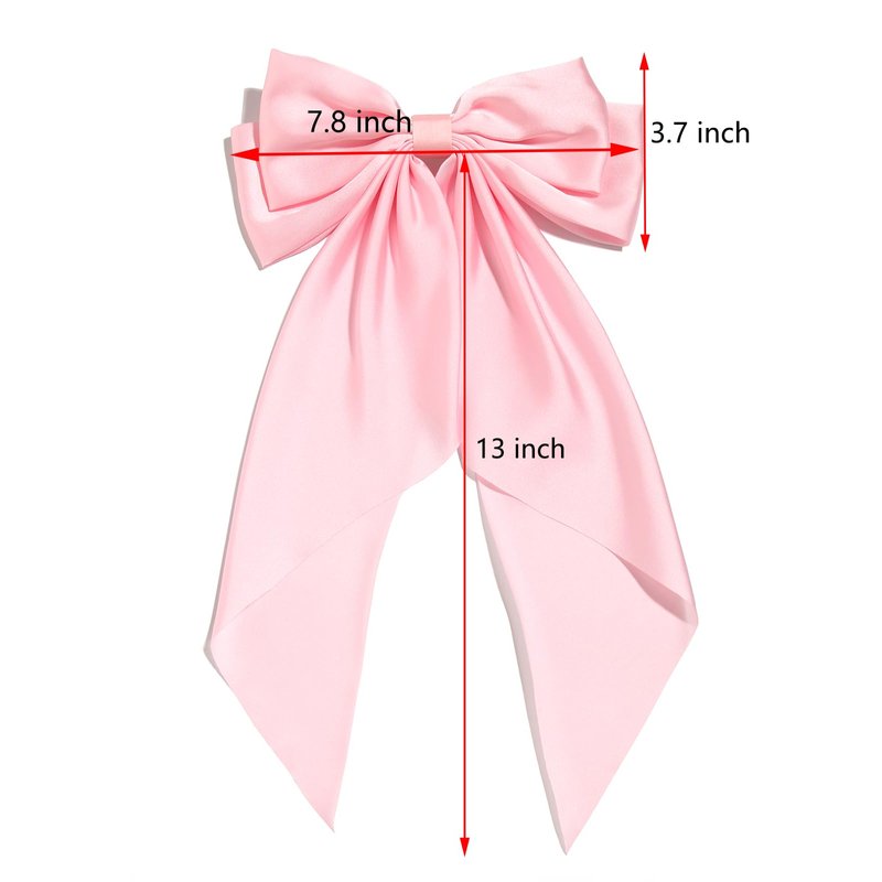 - Handmade long hair bow clips:Made with durable metal french barrette clips attached to back of the bow;satin solid color fabric,long tail with two-layer large bows