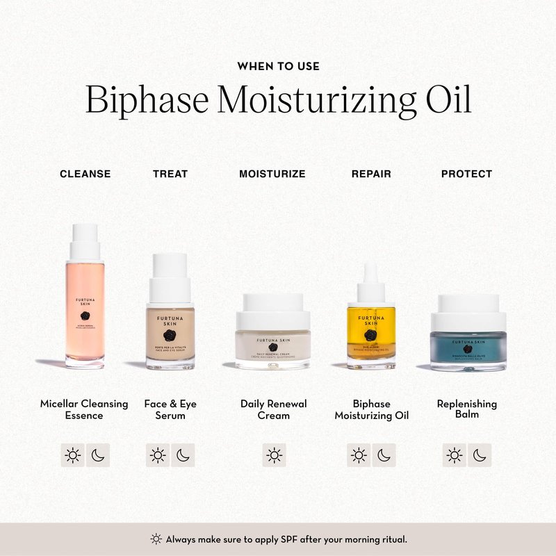Furtuna Skin Biphase Moisturizing Oil - Hydrating, Plumping & Protecting Face, Neck, and Decollete Oil, Vegan & Cruelty-Free, Organic Olive Oil-Infused