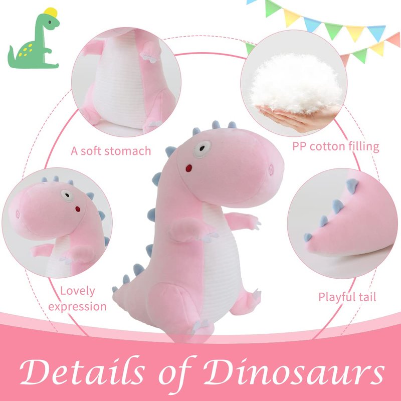 Furvana Cute Dinosaur Stuffed Animal Plush Toy, Adorable Soft Dino Plush Toys, Dinosaur Toy Plushies and Birthday Gifts for Kids Girls Boys (Pink, 10 Inch)