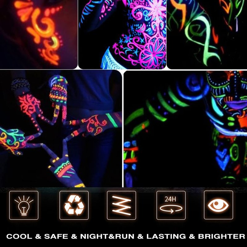 - 💘【Applicable Occasions】Neon face paint is very suitable for carnival, fancy dress, children's party, Halloween, school dance, drama, etc. It absorbs the light source under the action of external light, and the effect of ultraviolet light is better, and it emits a bright and vivid light in the dark.
