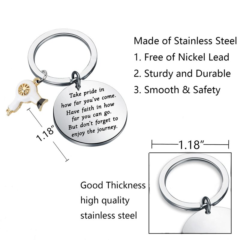 - MATERIAL&SIZE: This Hair Stylist Keychain is crafted of high polish stainless steel. As it is hypoallergenic, has no harm to health, and is very durable and suitable for treasure. Key chain pendant 1.18 inches in diameter. keyring diameter: 1.18inches.