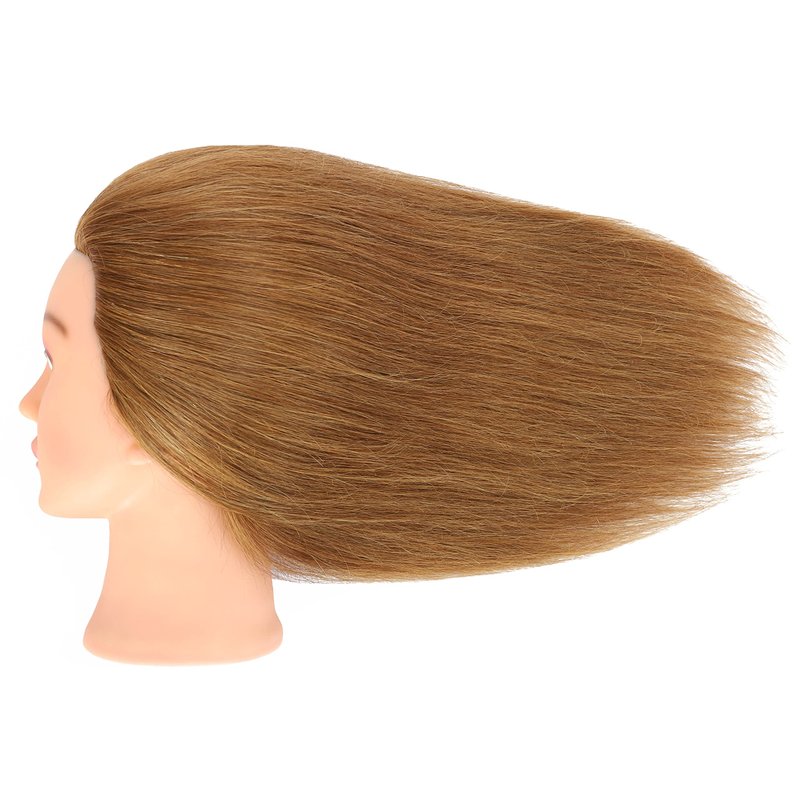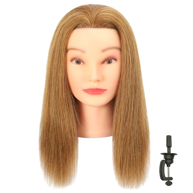 FUTAI Tan 100% Human Hair Mannequin Head with Table Clamp Stand for Hairdresser Practice Braiding Styling Manikin Cosmetology Doll Training Head Coloring Bleaching Dyeing Curling Cutting Updos Display