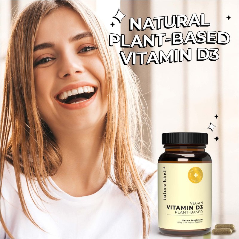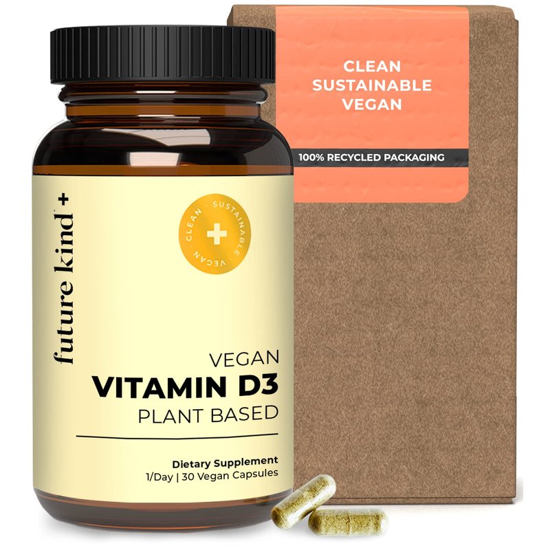 Future Kind Vegan Vitamin D3 (30 Softgels in Glass Bottle) - 2500 IU Plant-Based Vitamin D Supplements for Cell and Immune Support - Sugar-Free, Lichen-Based Vitamin D Supplements for Women & Men