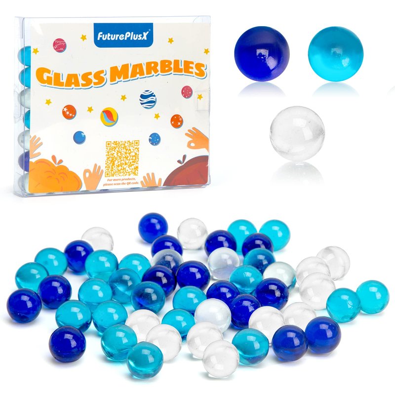FUTUREPLUSX Marbles Bulk, 75 PCS Glass Marbles Blue Marbles Set Ocean Theme for Kids Marble Run Games Fillers Aquarium Pebbles