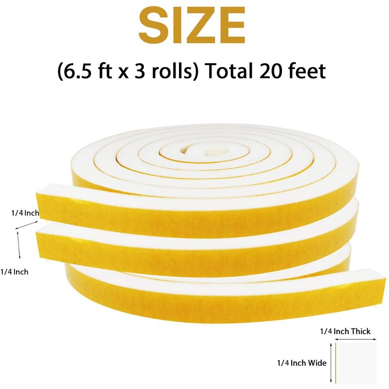 - 【3 Rolls Closed Cell Foam Strip】The insulating foam kit includes 3 Rolls of 1/4" W X 1/4" T X 6.5' L foam tape, (6.5ft x 3 Rolls) Total 20 Feet Length. Soft enough to be customized into different size and shape.