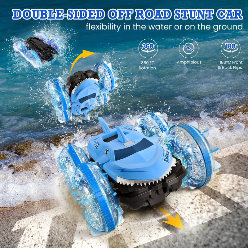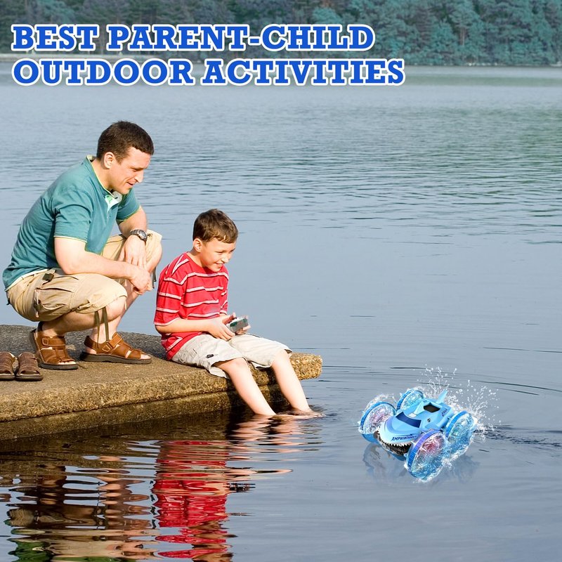 - Outdoor Amphibious RC Cars:Fuuy amphibious remote control car not only driving in the land, but also surf on the water! Smooth race on both land & water front & back flips, 360 degree spins. using a fully sealed design to effectively prevent water from enter the battery compartment , making the waterproof run in any weather, anywhere, anytime!