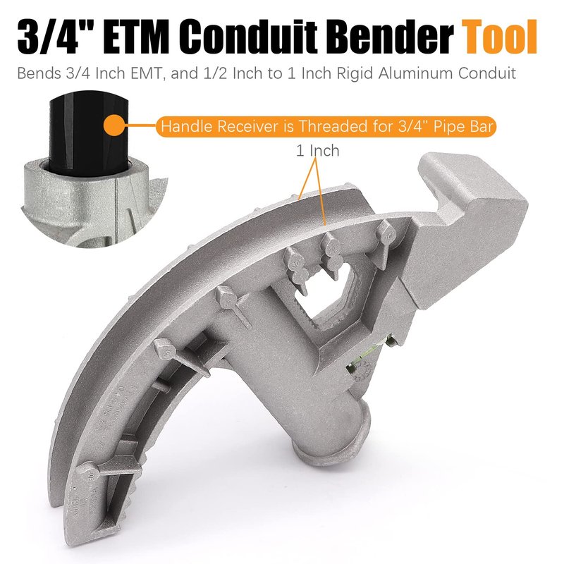 Bends 3/4" Inch EMT, and 1/2" Inch to 1 Inch Rigid Aluminum Conduit.