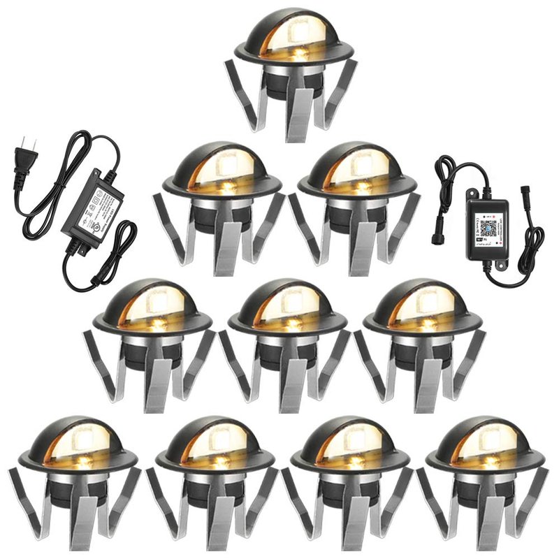 FVTLED WiFi Deck Lights Kit, 10pcs Low Voltage Φ1.38 Outdoor Recessed Step Stair Warm White LED Lighting, Work with Alexa Google Home, Black