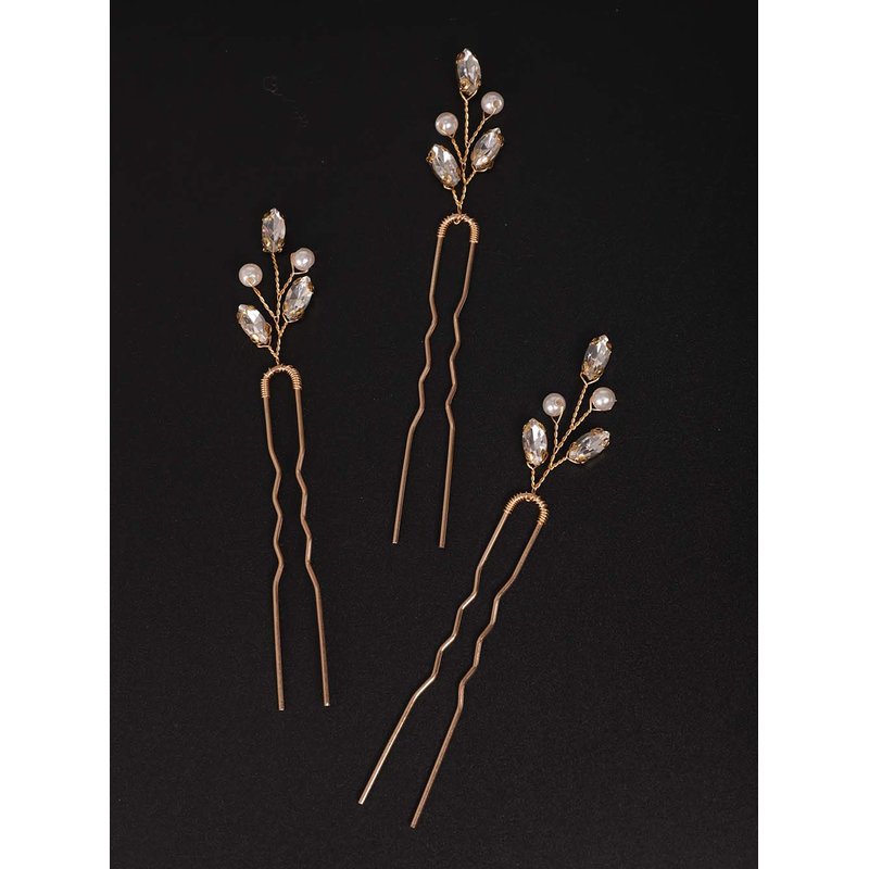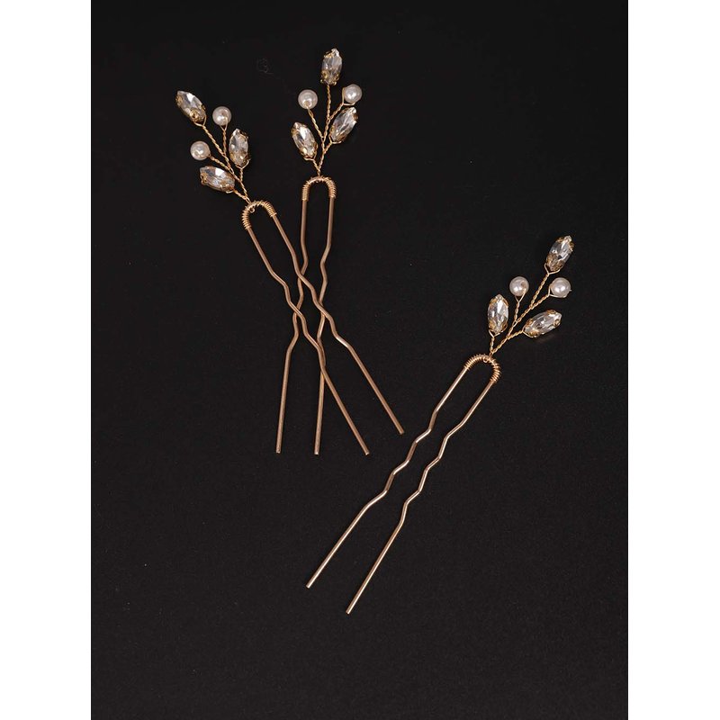 fxmimior 3 PCS Bridal Women Pearls Rhinestones Simple Little Hair Pins Vintage Wedding Party Crystal Rhinestones Party Prom Hair Accessories(Gold))