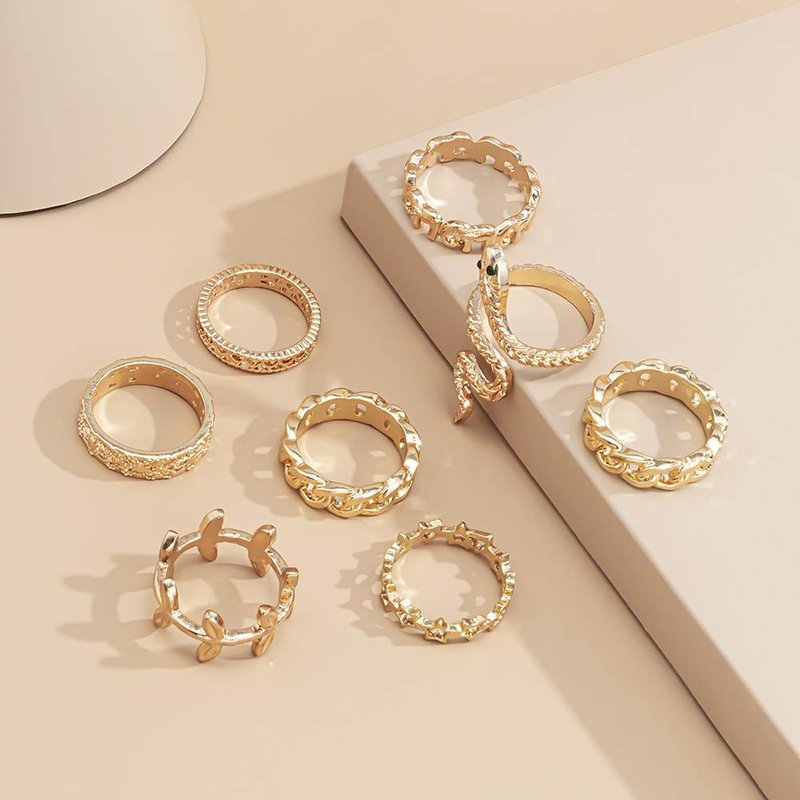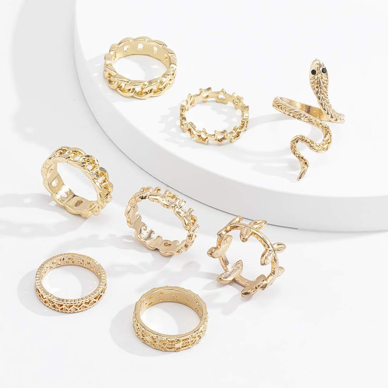 fxmimior Boho Dainty Gold Ring Set Finger Leaf Rings Sets Vintage Snake Knuckle Rings for Women and Girls 8 pcs