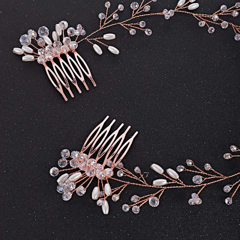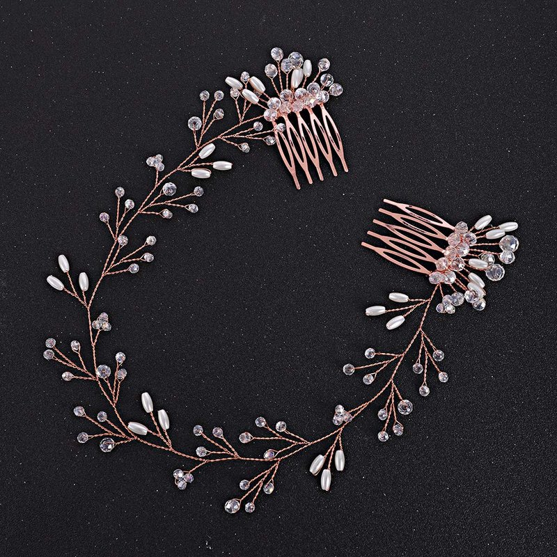 fxmimior Bride Rose Gold Pearl Headband Wedding Hair Accessories Crystal Hair Vine Headband Wedding Hair Comb Evening Party Hair Piece for Women…