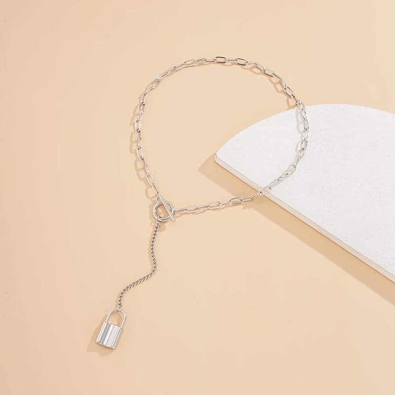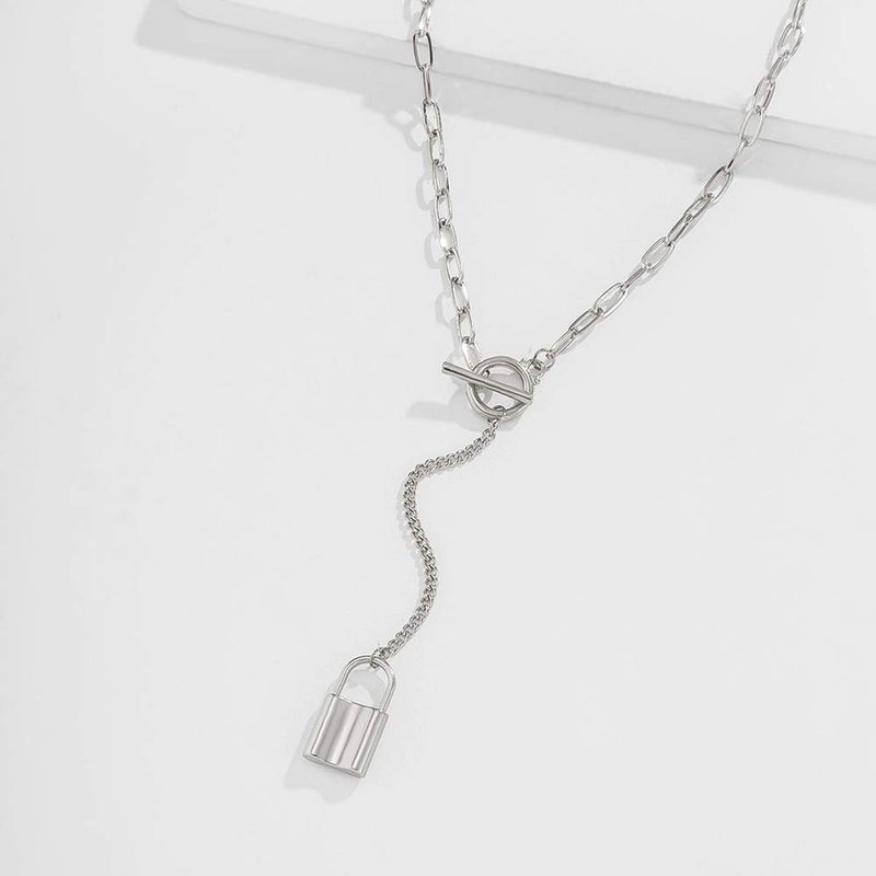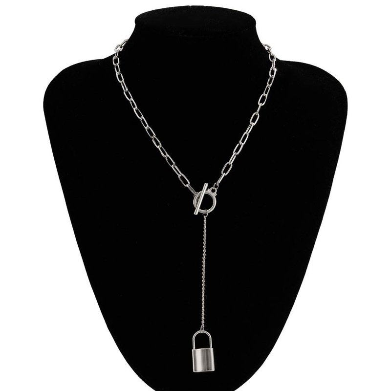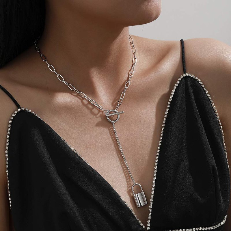fxmimior Dainty Gold Silver Chain Y Long Layered Necklace Stackable Lock Choker Necklace Minimalist Necklace Chain Jewelry for Women and Girls (Silver)