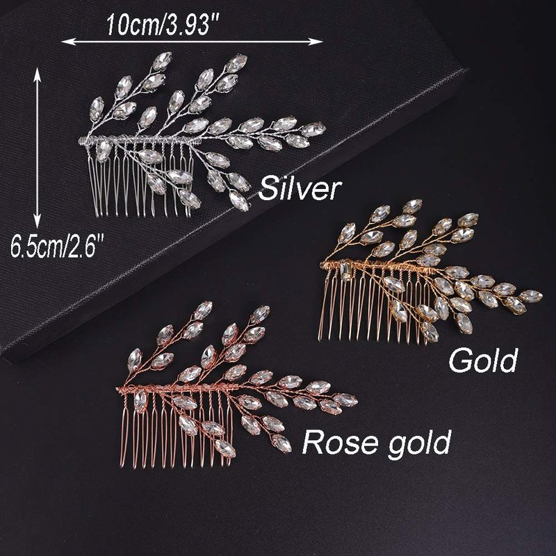 FXmimior Wedding Bridal Rose Gold Hair Accessories Wedding leaf crystal hair jewelry Wedding Comb Crystal Hair Comb Bridal Headpiece Bridal Hair Comb Rhinestone Comb (rose gold)