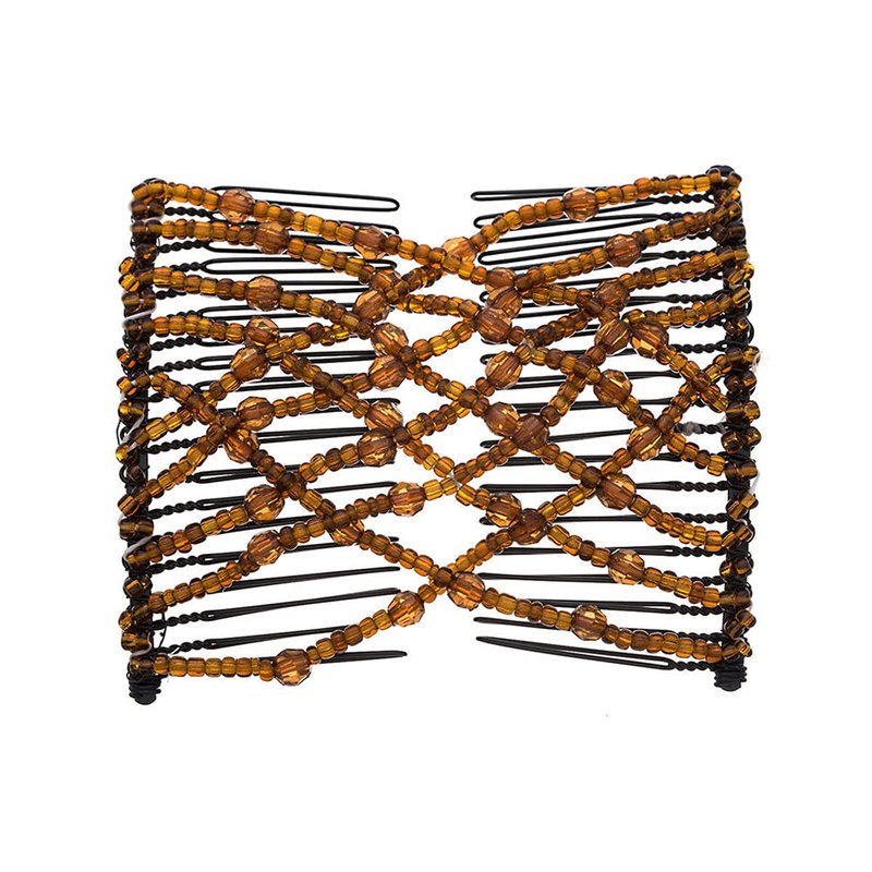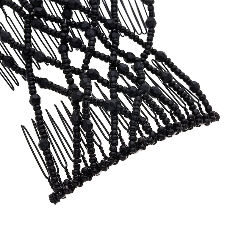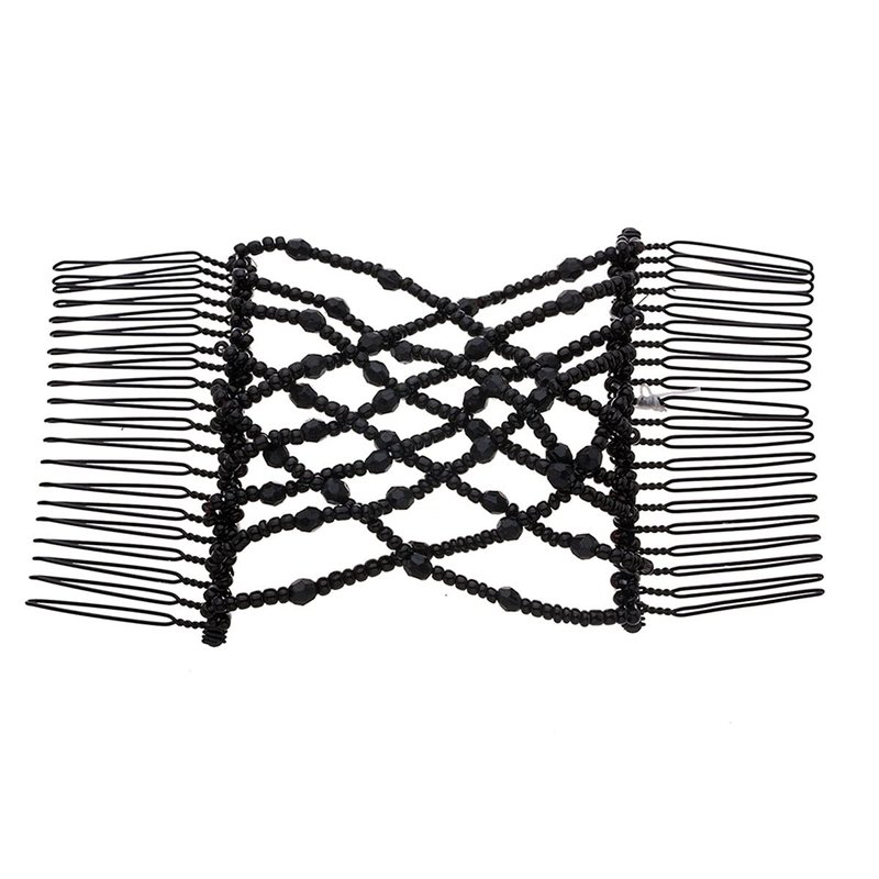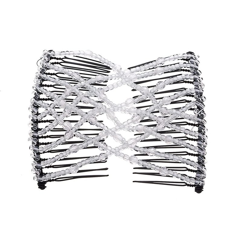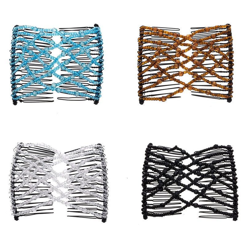 FXQHAN 4 Pieces Beads Hair Combs Magic Elastic Hair Clips Stretchy Hair Comb Double Clips for Women Hair Accessory