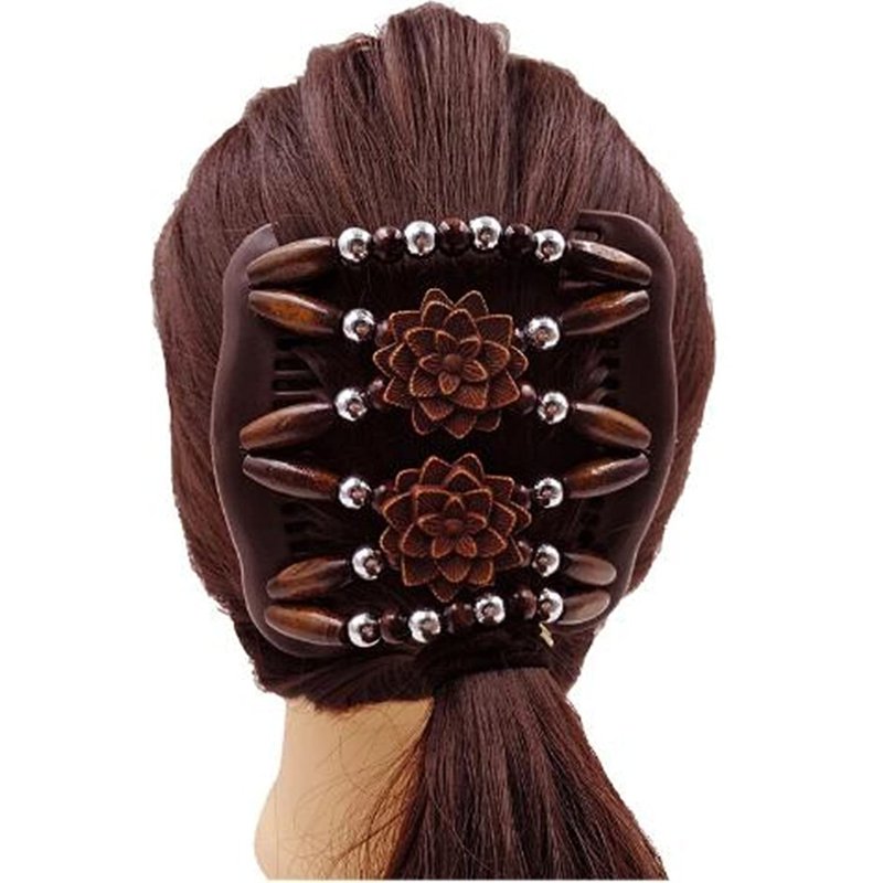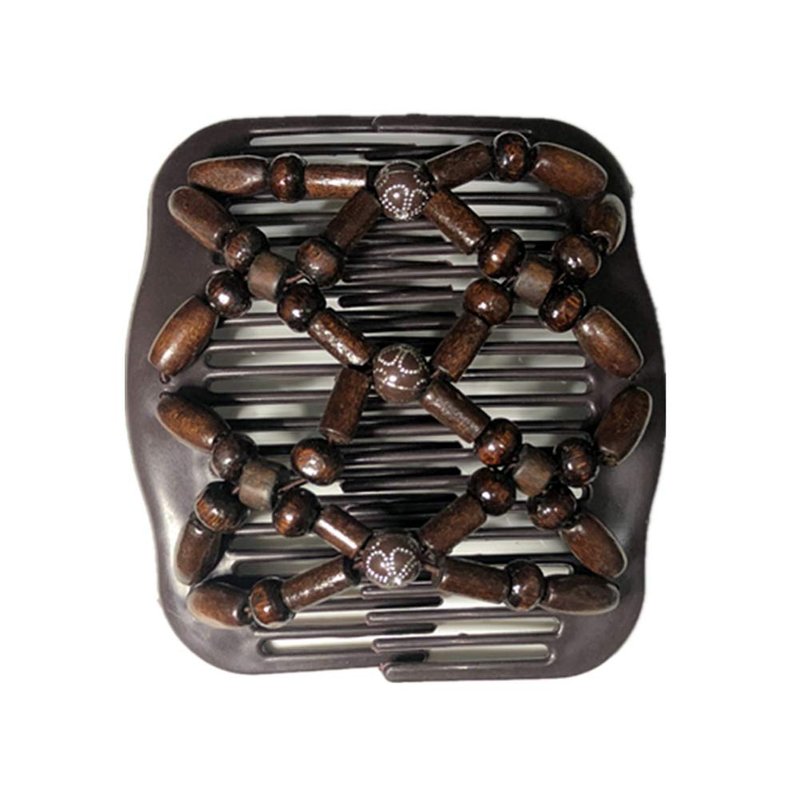 FXQHAN Women Magic Hair Combs Wood Beaded Stretch Double Side Combs Clips Bun Maker Hair Accessories,Pack of 5