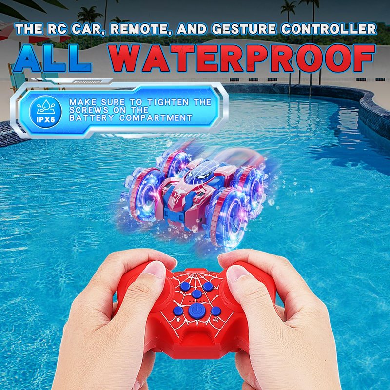 - Full Waterproof:This remote control car features exceptional waterproofing. Enjoy play on land or in water. Both the remote control and gesture remote control are waterproof, ensuring worry-free fun in any environment