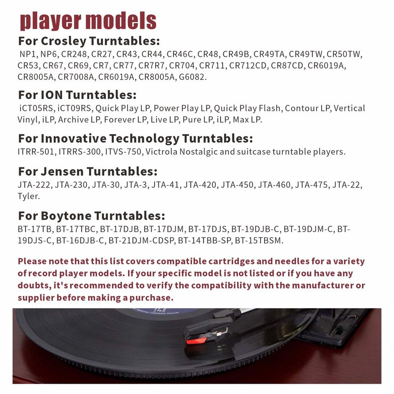 - Universal Compatibility: These styluses feature a universal design, compatible with ION, Jensen, Crosley, Victrola, Sylvania, and other turntable brands. Regardless of the brand you own, these styluses deliver outstanding performance.