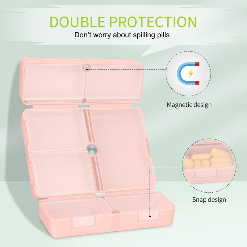 - ⏰Small Pill Box: [Foldable & Magnetic Design] The magnetic design and the inner lids are combined to form a DOUBLE LOCK,prevents the pills from falling out. The pillbox closes tightly, no worry that the case will open in your purse.Warm Tips:The lid is a little hard to open the first time you use it, it will be easier to open after a few uses.