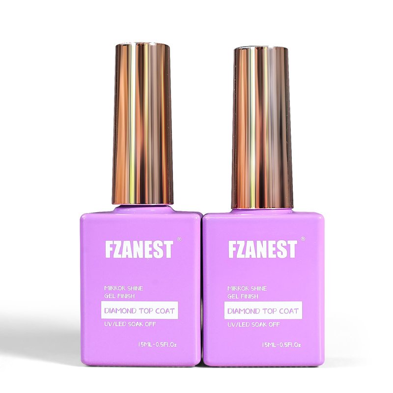 FZANEST Gel Nail Polish Diamond Top Coat- 2 * 15ML No Wipe Top Coat Clear Gel Polish High Gloss Mirror Shine Finish Long Lasting Home DIY Professional Manicure