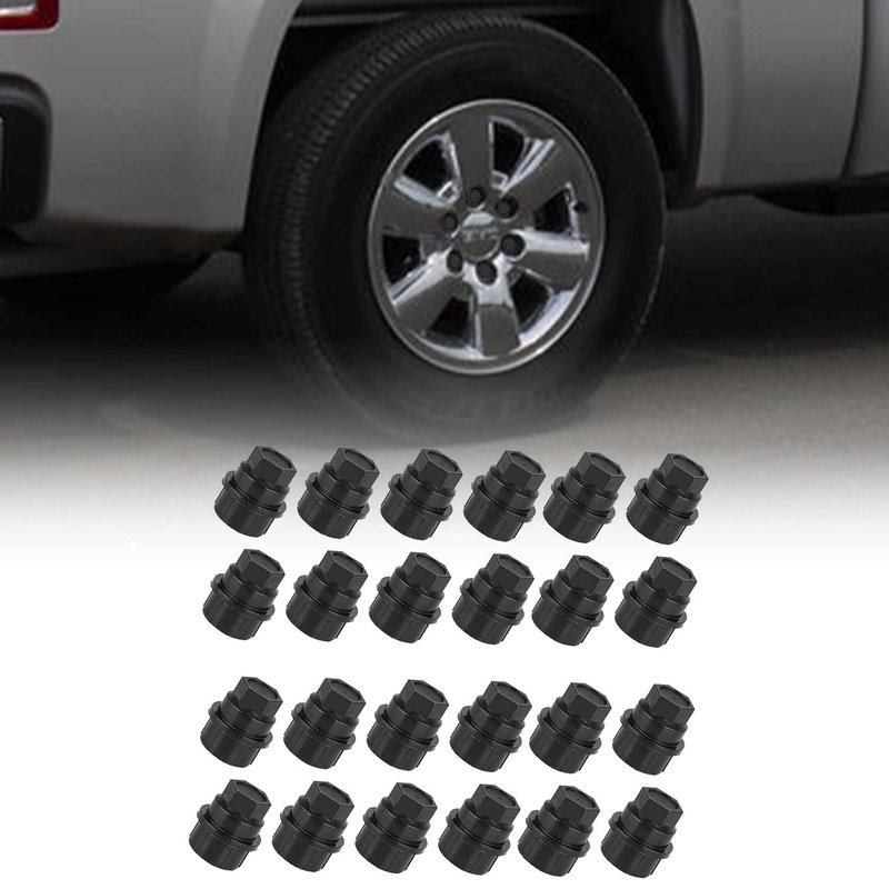 FZJDSD 24 pcs Black Wheel Lug Nut Covers Caps Compatible with Chevy Gmc 1500 2500 Full Size Truck Thread, Size M27-2.0, Hexagon Thread Size 27mm, Inner Thread Size 22mm, Height 40MM Replace 15646250