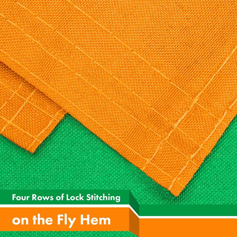 - Fly ends are secured with FOUR rows of lock stitching to prevent ripping and tearing. Heavy duty polyester canvas heading with two strong solid brass grommets for easy hanging and display.