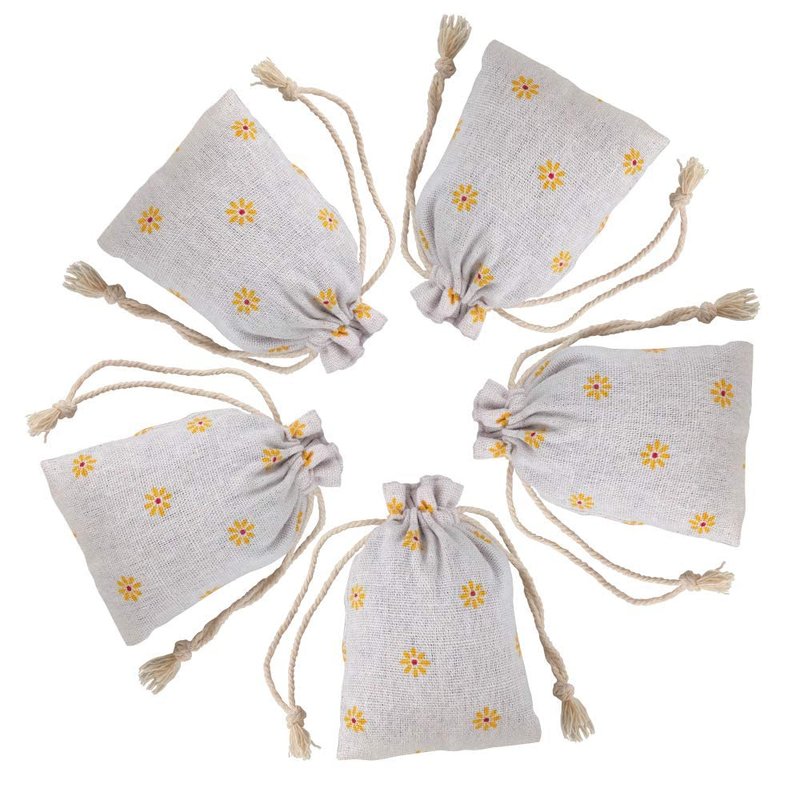 G2PLUS Small Drawstring Gift Bags,20PCS Cotton Burlap Drawstring Pouches Halloween Candy Bags Yellow Daisy Treat Bags Wedding Party Favor Jewelry Pouches for Gift,Holiday,Home Supplies(3.5'' x 4.7'')