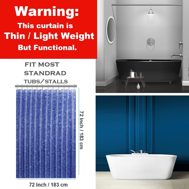 - [PERFECTLY FIT & NEW HONEYCOMB DESIGN] - Standard 72" x 72" size easily fits any standard size bathtubs and showers. Suit with straight/curved shower rods. New HoneyComb Curtain can be used along or as a liner for a fabric shower curtain. No more worrying about fitting it with your favorite fabric shower curtain. If you got your favorite fabric shower curtain, this liner should be your best option to choose.
