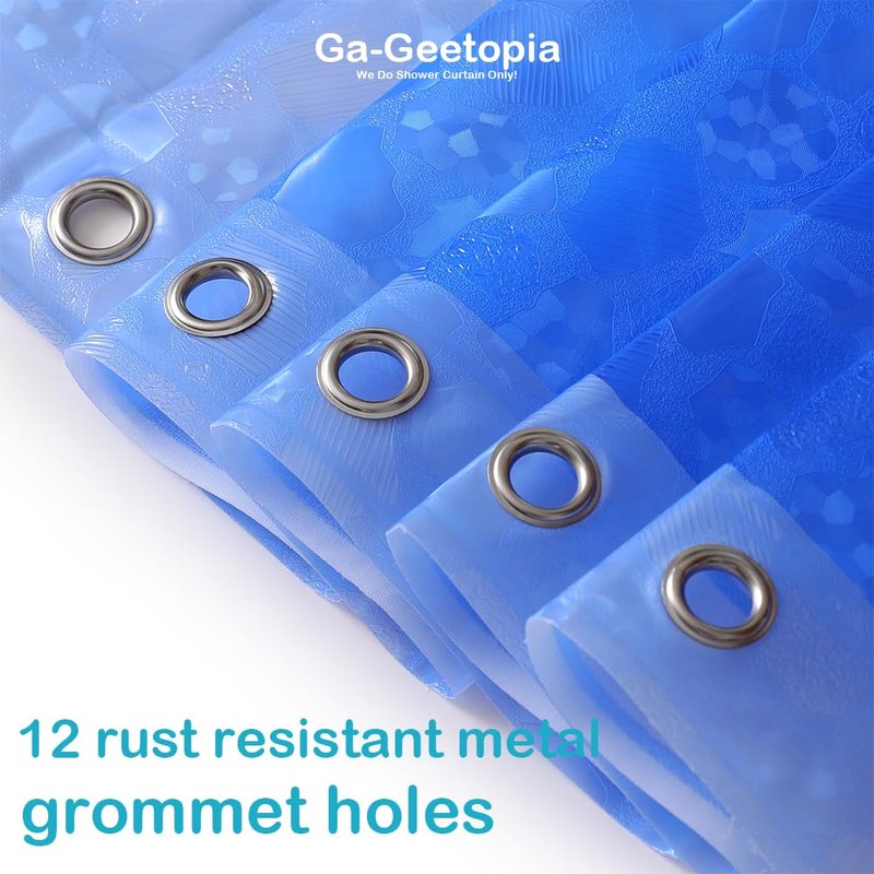 Ga-Geetopia Newest 3D Honeycomb Design - EVA Blue Plastic Shower Curtain Liner, Light Weight 72" x 72" Bathroom Shower Showroom Curtain Liner with Rustproof Metal Gromments and Weighted Magnet