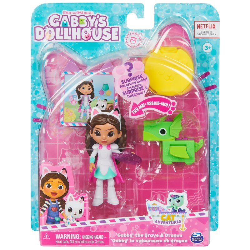 Gabby's Dollhouse, Knight Gabby Toy Figure Set with Surprise Toy and Mini Dragon Pal, Kids Toys for Girls & Boys Ages 3 and Up