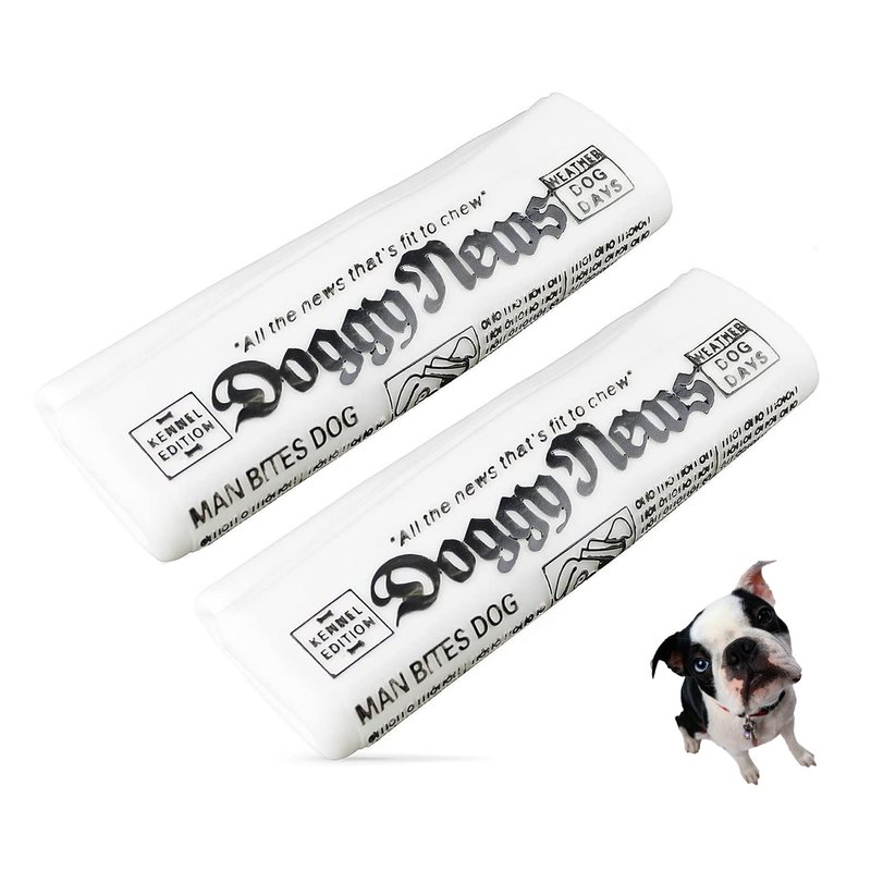 2PCS Funny Dog Chew Toys, Newspaper Dog Toy, 6.2 x 2.1-in (16 x 6.5 cm), Durable Squeak Toy for Dogs