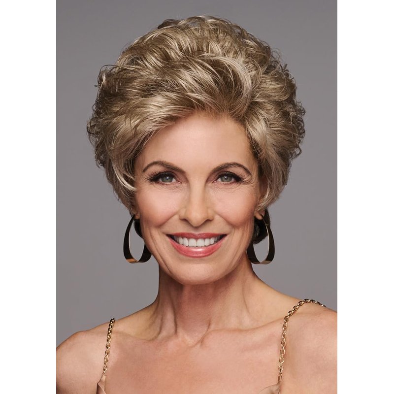 Gabor Instinct Luxury Short Wavy Shag Wig With Extended Lace Front by Hairuwear, Petite Average Size Cap, G4+ Dark Chocolate Mist
