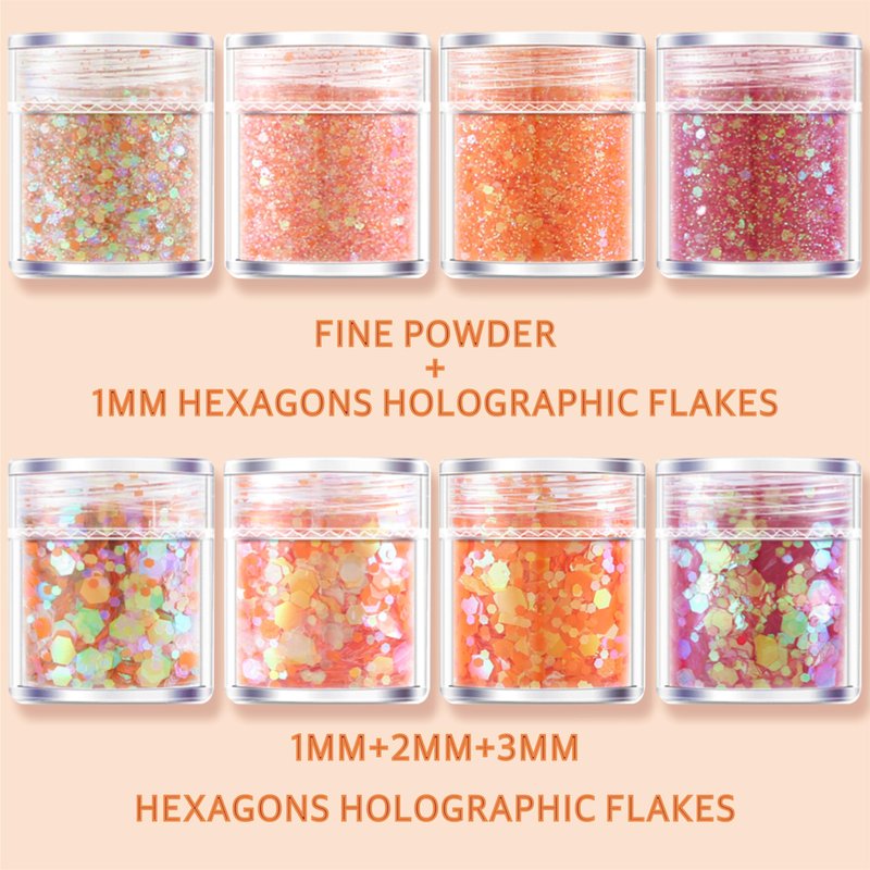 - 【 SERIES GLITTER SET 】Compared with the full-color assorted glitter set, the series of gradient color glitter set has unique color characteristics. Gradient holographic colors and chunky flake with extra fine glitters, this will make your beauty shine! No matter what occasion you are in, you will be the focus of everyone's attention.