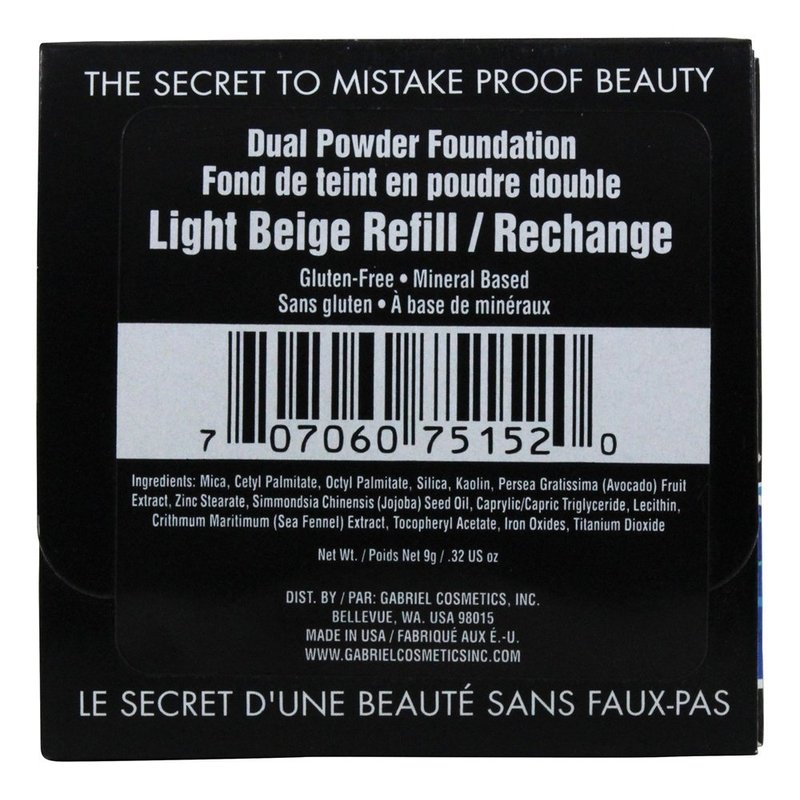 Gabriel Cosmetics Dual Powder Foundation, Natural, Paraben Free, Vegan, Gluten-free, Cruelty-free, Non GMO, Pressed mineral powder, enhanced with Sea Fennel (Light Beige REFILL)