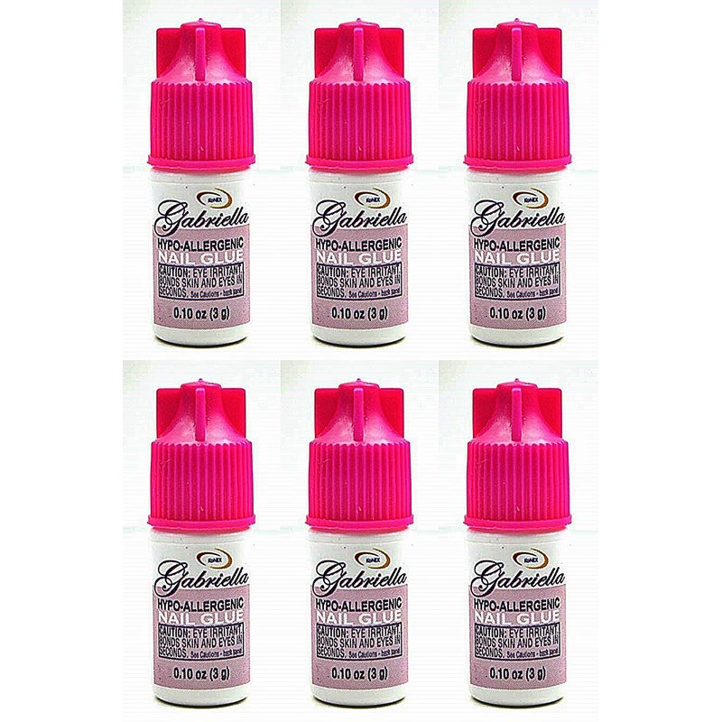 Gabriella Hypo-Allergenic Maximum Spee Nail Glue .Net Wt. 0.10 oz (3g), Fast Drying Adhesive for Glue-On Nails & Repairs(6 Pack)