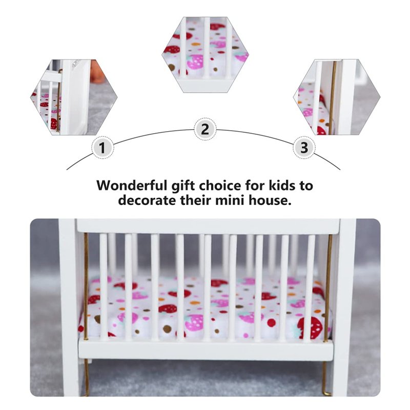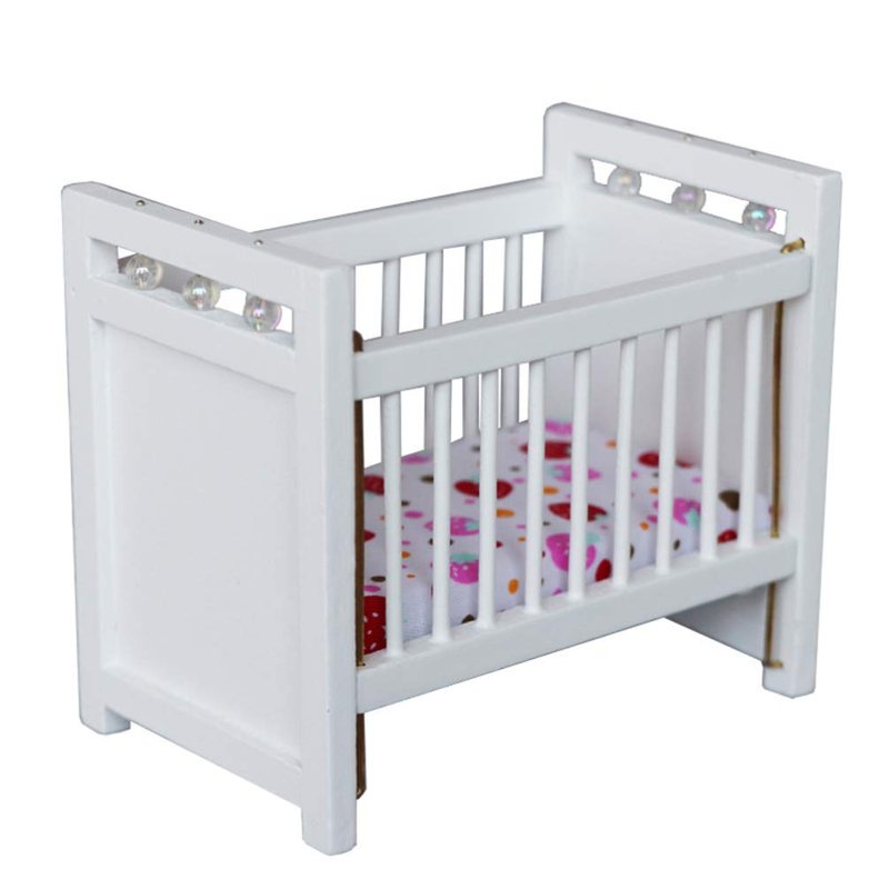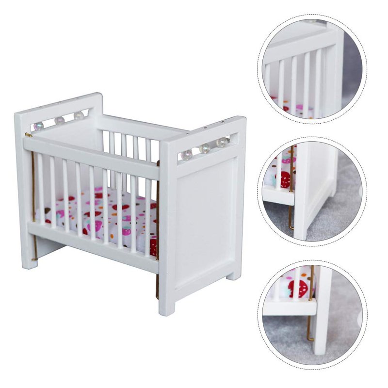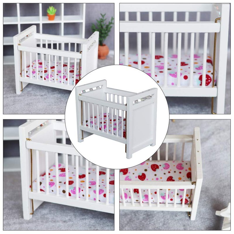 Gadpiparty Dollhouse Baby Bed, 1: 12 Miniature Dollhouse Baby Doll Crib Bed Mini House Baby Crib Cradle Model Dollhouse Furniture Accessories for Dollhouse Decorations ( White )