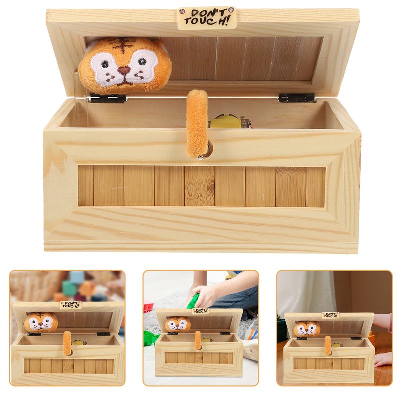 Gadpiparty Dont Touch Useless Box Wooden Useless Box Toy Tricky Toys Funny Tiger Box Toy Leave Me Alone Decorative Machine Tiger Toys for Kids Friends Home and Office Desk