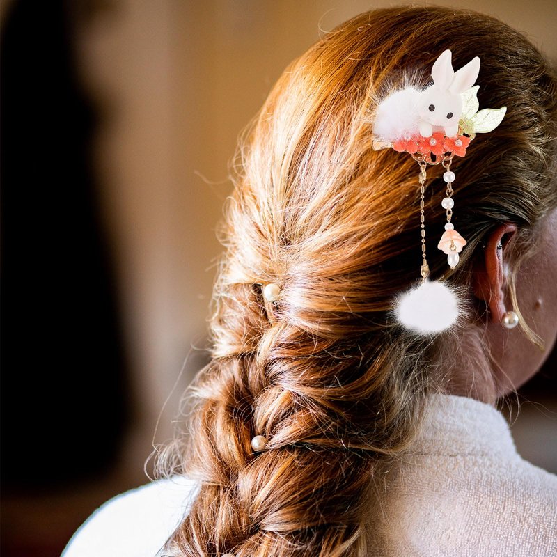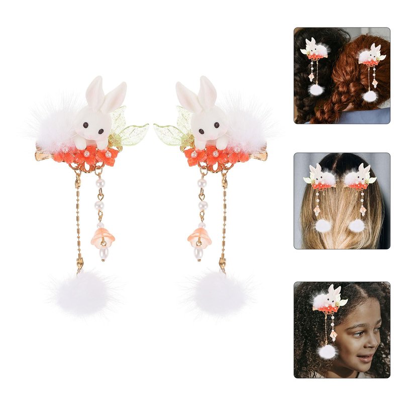 Gadpiparty Plush Bunny Hair Clips: 2023 Chinese New Year Fluffy Bunny Hair Clip with Pompom Ball Tassel Animal Hair Clips Cute Bunny Hair Claw Clips for Easter Gifts Womens Girls