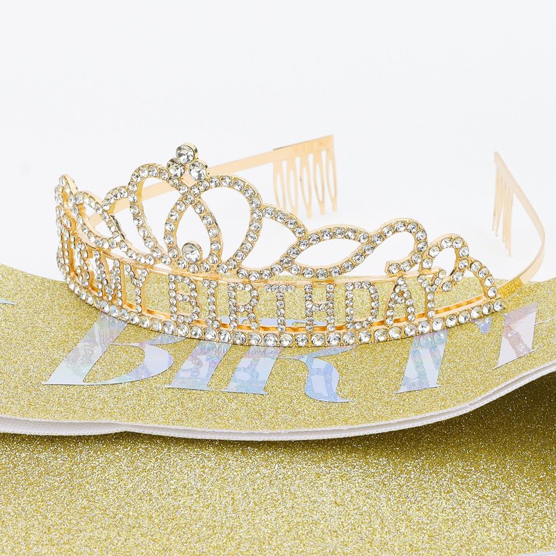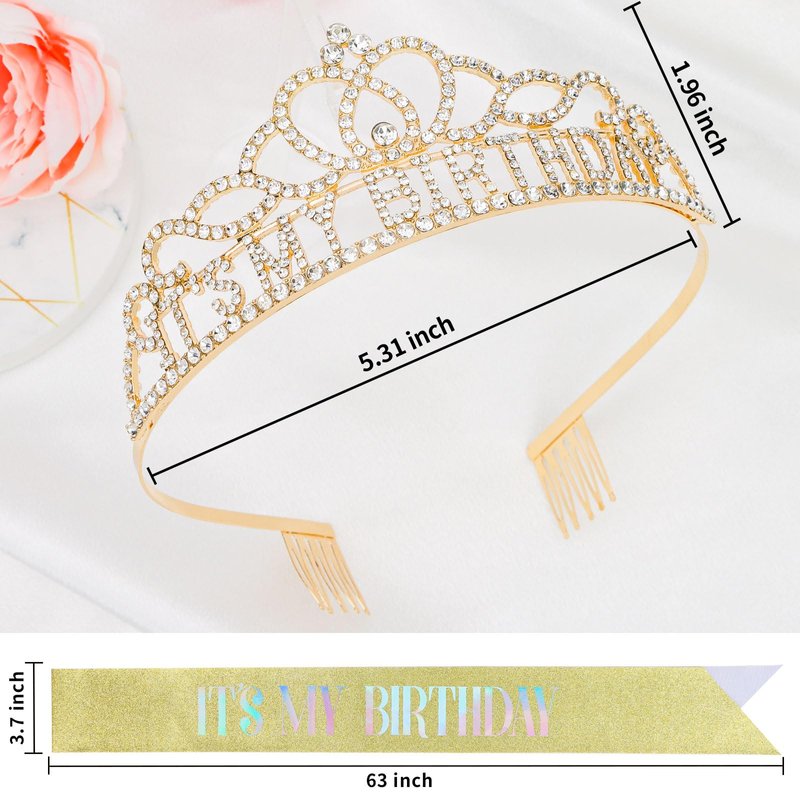 - Complete Birthday Set: Rhinestone IT'S MY BIRTHDAY crown, gold birthday sash decorate with "IT'S MY BIRTHDAY" pattern and hair clips for women girls.
