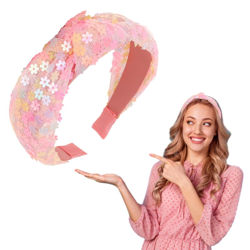 GAFATORY Pink Sequin Headband Sparkly Glitter Headband for Girls Knotted Hair Band Pink Hair Accessories Fashion Headbands for Women Twist Hairband