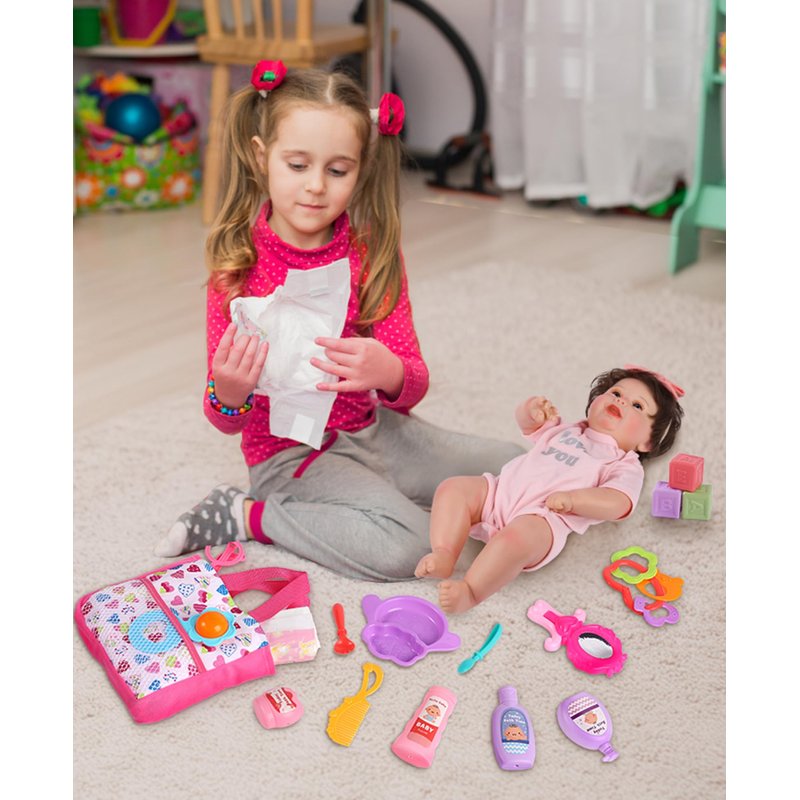 - Bathing and Caring Accessories:Baby doll set includes prentend shampoo,lotion,trainning potty,comb,babay powder and more.Realistic pretend play baby doll sets helps enhance child's imaginative skills.It will keep your little ones busy for hour.