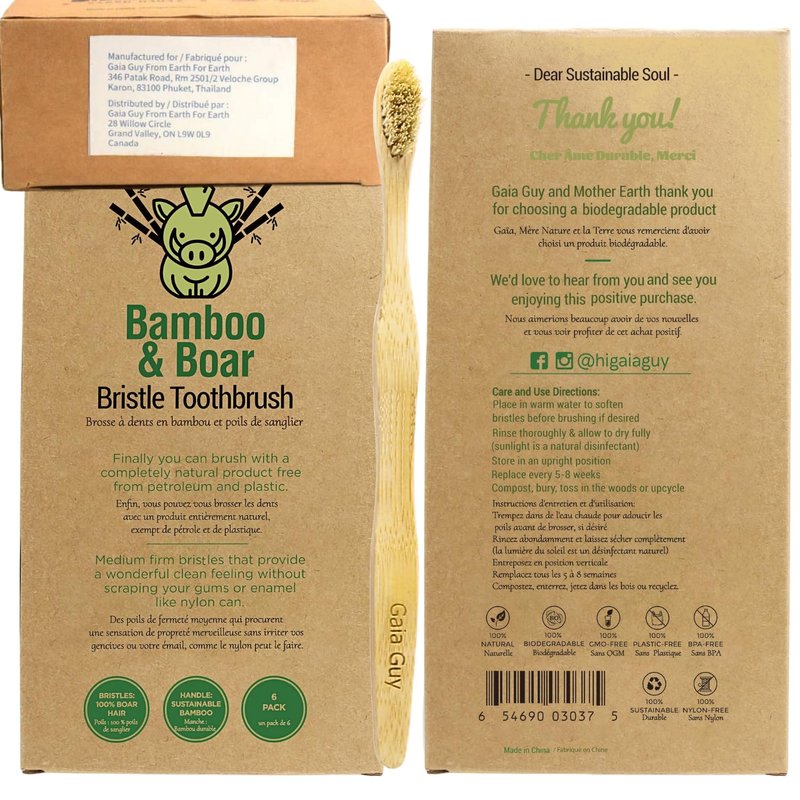 - RENEWABLE RESOURCES: Gaia Guy is proud to offer a bamboo handle and boar bristle toothbrush. It's the ultimate natural and renewable resource based toothbrush to help you start and finish every day feeling good about your commitment to living as close to nature as you possibly can.