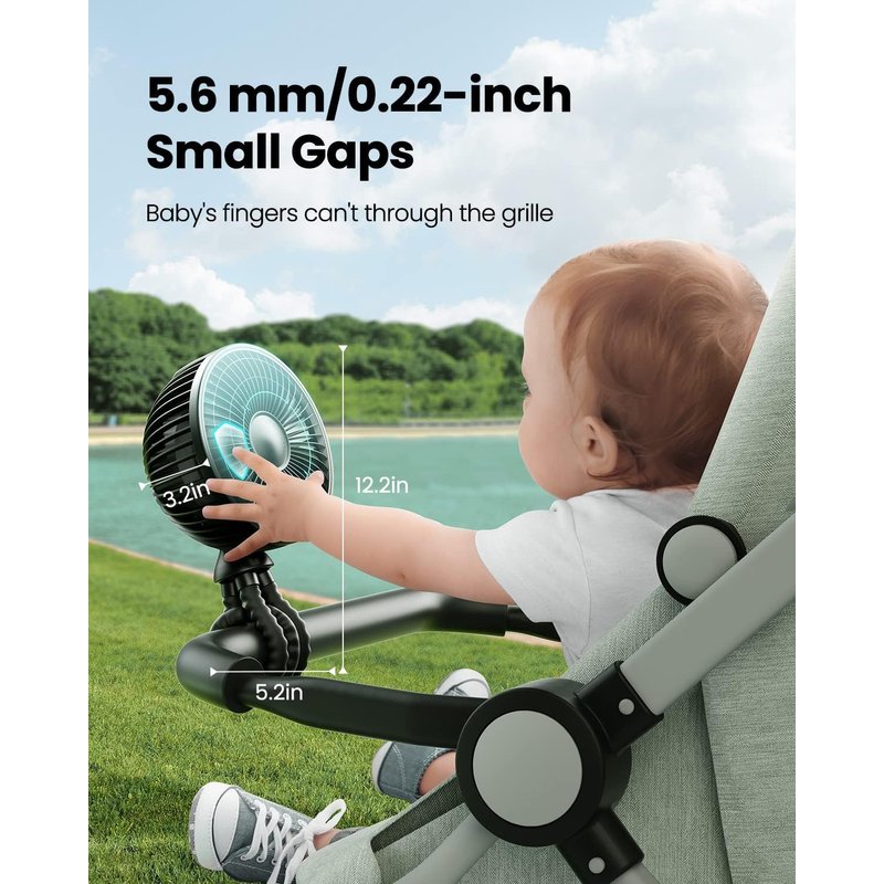 - Upgraded Tripod and 5.6MM Safe Gap for Baby: The entire arms of this handheld fan are durable silicone for great grips. The gap of baby fan is only 5.6MM, smaller than other desk fans, and really safe for little fingers. Great fans for baby infants and toddlers!